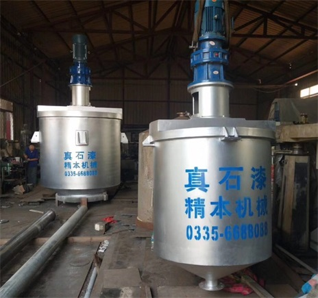 真石漆釜是根據(jù)真石漆的工藝特性,分為單軸型和雙軸同心型。雙軸同心型具有慢速刮缸功能,運(yùn)行時(shí)能使物料進(jìn)行三維翻滾,使物料快速均勻混合,并有效的消除死角及物料掛壁。物料攪拌和調(diào)色在同一釜內(nèi)完成。筒體采用自行研發(fā)的打磨機(jī)拋光而成,便于沖洗,換色,使物料大大減小了色差。